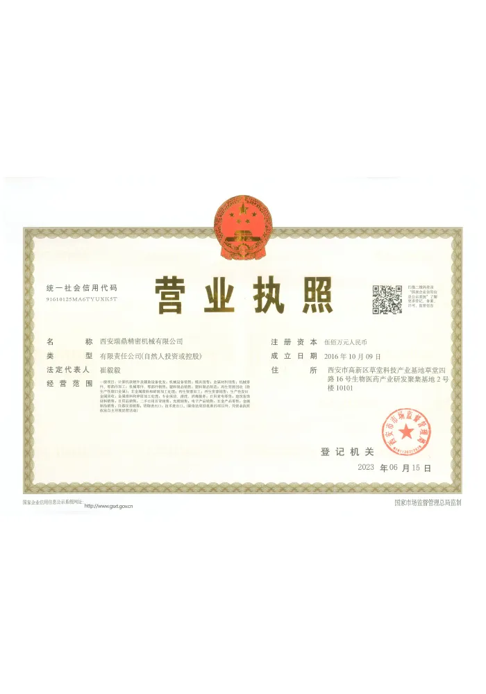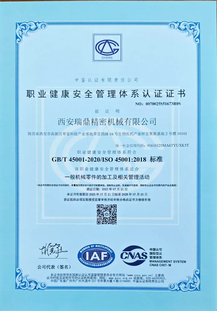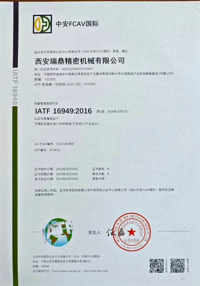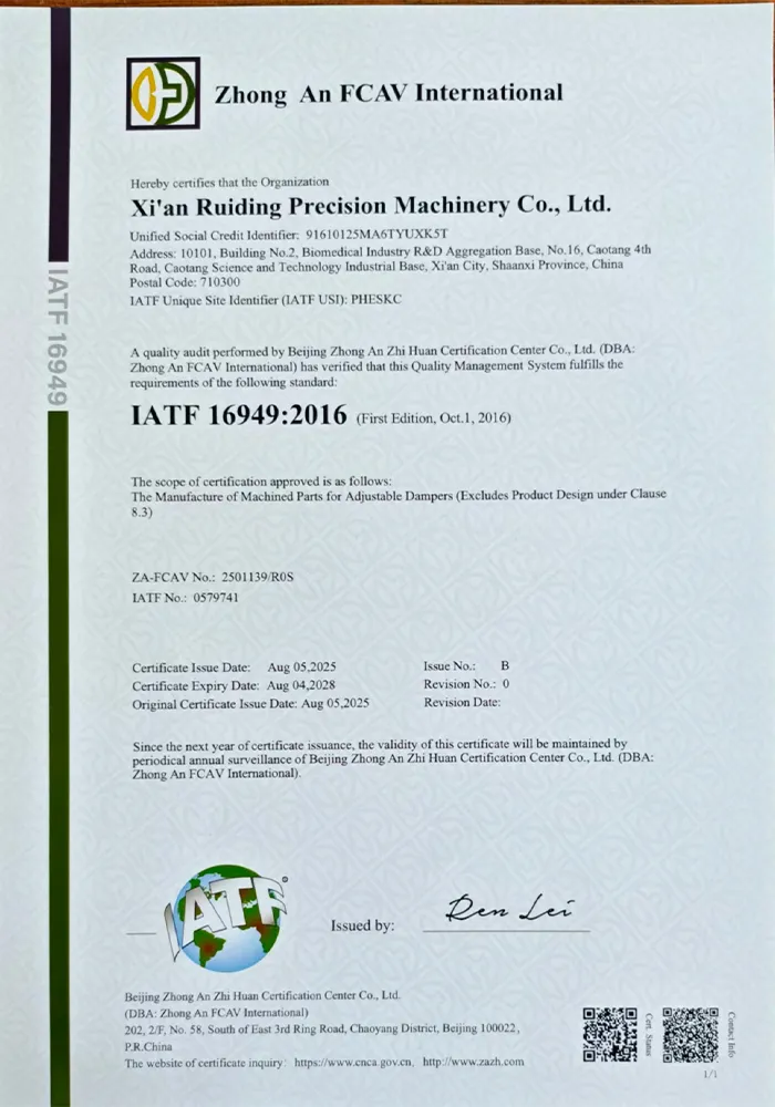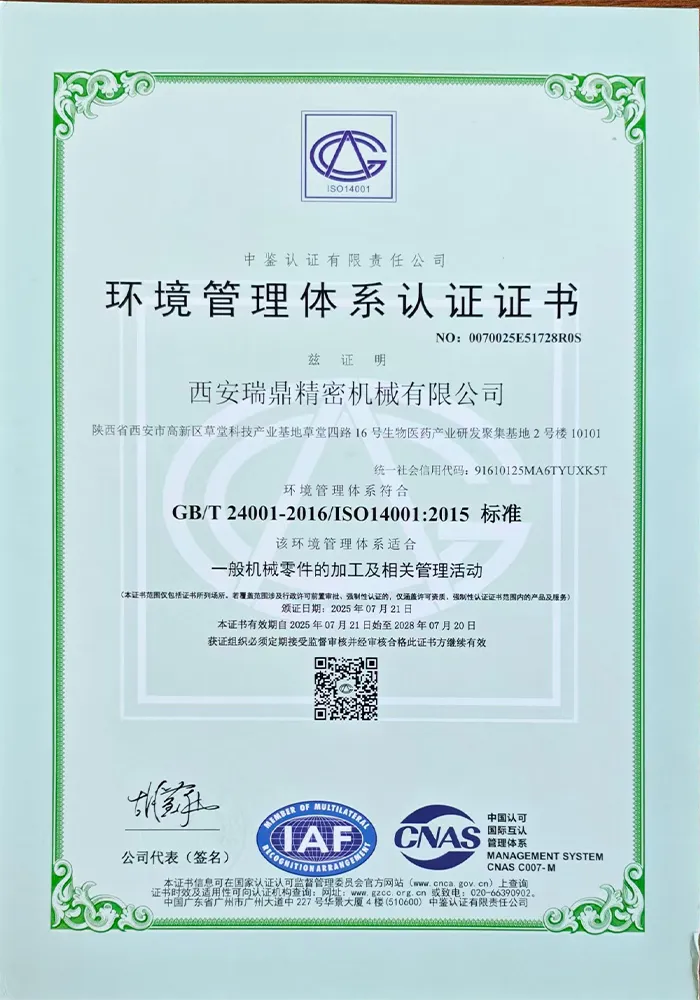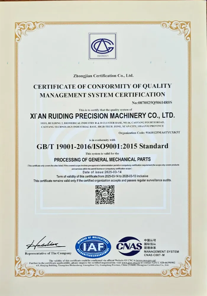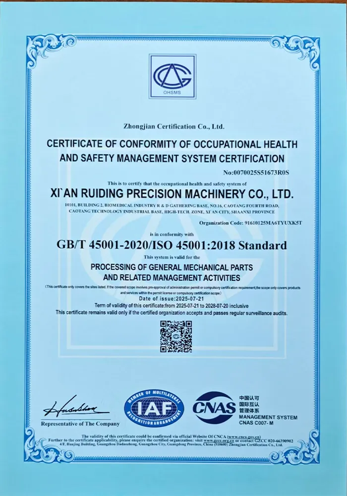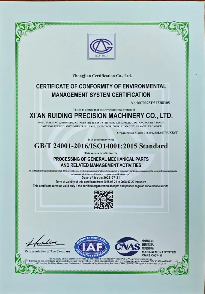Жуйдин Прецизион придерживается корпоративного видения «технологии как ядро, качество как жизнь» и реализует принципы бережливого управления. Компания располагает профессиональной и высокомотивированной командой, оснащена 73 единицами современного оборудования, включая обрабатывающие центры, станки с ЧПУ, трёхкоординатные измерительные машины и другое. Это позволяет охватывать полный цикл процессов — от прецизионной обработки и сварки до контроля качества, обеспечивая возможности для производства высокотехнологичного оборудования.