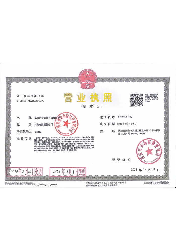 ООО Шэньси Цзинтэ Интеллиджент Текнолоджи была основана 10 марта 2021 года и является высокотехнологичной корпоративной группой, ориентированной на интеллектуальные технологии. Через свои специализированные дочерние компании она реализует скоординированное развитие многопрофильного бизнеса. В состав компании входит несколько контролируемых дочерних предприятий, среди которых OOO Шэньси Цзинтэ Технологии измерения и контроля (национальное высокотехнологичное предприятие) и OOO Сиань Жуйдин Прецизионное Машиностроение.